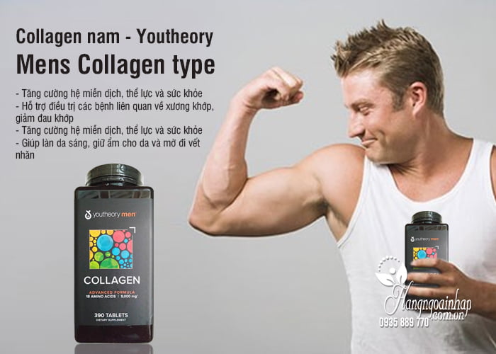 Youtheory Mens Collagen 390 viên của Mỹ có công thức độc đáo bổ sung collagen cho cơ thể để làn da được đàn hồi và cơ sụn khớp dẻo dai linh hoạt. Sản phẩm dành cho nam giới mang lại hiệu quả cao, khong gây tác dụng phụ và đã được bán chạy tại thị trường Mỹ suốt nhiều năm qua.