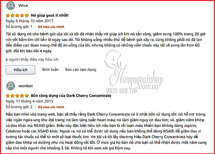 Sản phẩm Black Cherry 1000mg là thực phẩm chức năng hỗ trợ chứ không phải thuốc trị gút, hiệu quả sẽ vẫn tùy thuộc vào cơ địa mỗi người. Tuy nhiên, theo nhiều đánh giá trên Amazon, thì đã có rất nhiều người giảm đau gout khớp, không còn viêm sưng sau khi uống sản phẩm này.
