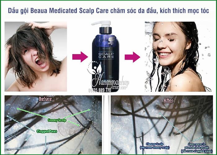 =>> Vậy thì Dầu gội Beaua Medicated Scalp Care 400ml là sự lựa chọn lý tưởng để chăm sóc tóc và da đầu của bạn. Dầu gội được chiết xuất từ thảo dược thiên nhiên, có tác dụng hữu hiệu trong chăm sóc da đầu, trị gàu, ngứa, làm sạch dầu nhờn, tăng độ phồng cho tóc. Bên cạnh đó dưỡng chất dồi dào phục hồi tóc hư tổn, kích thích tóc mọc dày hơn.
