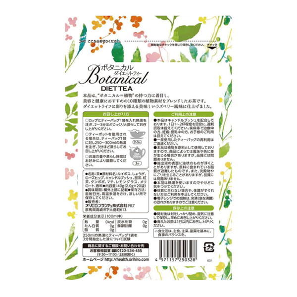 Trà giảm cân Botanical Diet Tea Orihiro 20 gói x 2g của Nhật bản - Chiết xuất từ thảo mộc thiên nhiên