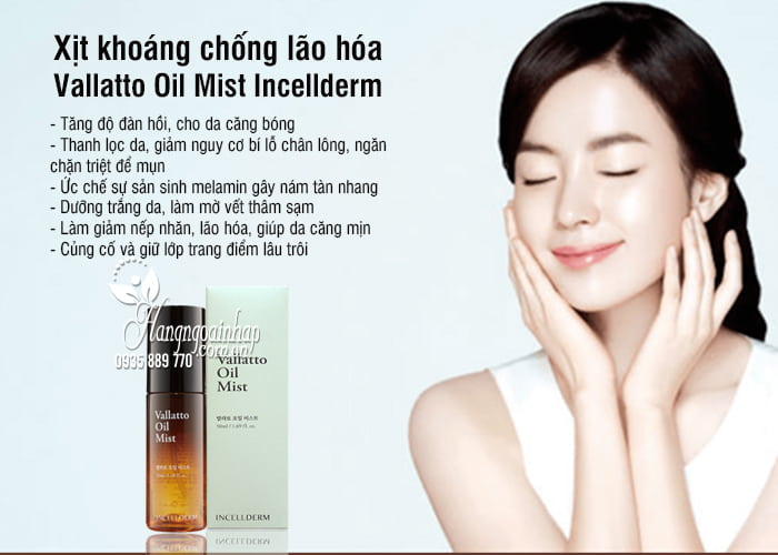 ✔ Xịt khoáng dưỡng da Incellderm Vallatto Oil Mist bổ sung ẩm và dưỡng chất tức thì cho làn da tươi mới, rạng rỡ.