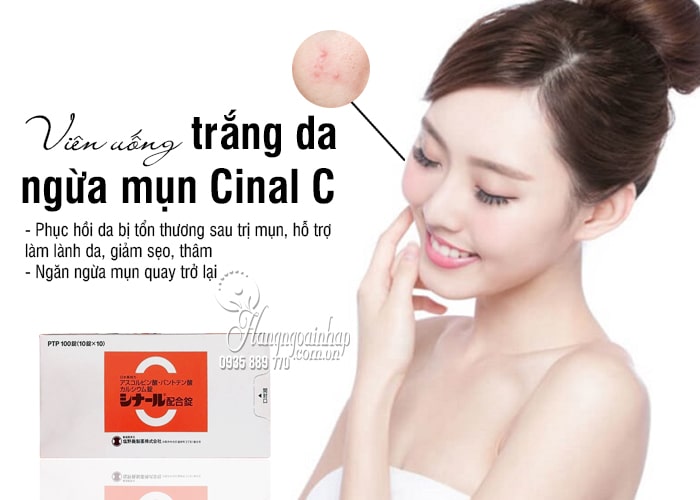 =>> Viên uống trắng da ngừa mụn Cinal C 100 viên chính là sản phẩm tuyệt vời dành cho bạn. Công thức độc đáo với 2 thành phần là vitamin C và vitamin B5, giúp phục hồi da bị thâm mụn, tổn thương, da không đều màu, bị nám tàn nhang. C trị thâm, làm sáng da và đều màu da, B5 tái tạo phục hồi cấu trúc da, ngoài ra còn giúp ngăn ngừa mụn.