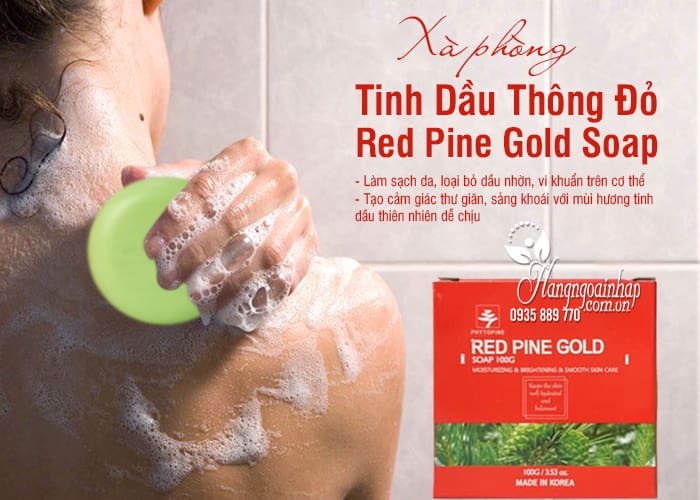 -Xà phòng tinh dầu thông đỏ Red Pine Gold được yêu thích ở Hàn Quốc. Sản phẩm có thành phần từ tinh dầu thông đỏ cùng với nhiều hoạt chất giúp tăng cường khả năng làm sạch, kháng khuẩn da, làm giảm nguy cơ dị ứng, mẩn ngứa, khô ráp, lão hóa,...