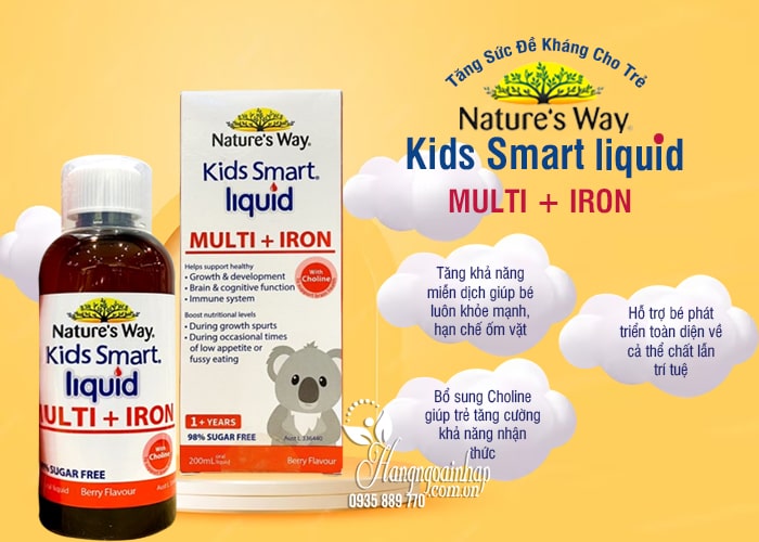 - Nature’s Way Kids Smart Multi Iron Liquid 200ml bổ sung vi chất và sắt giúp tăng đề kháng, giảm ốn vặt, phù hợp với những bé kén ăn, biếng ăn, kém hấp thu.