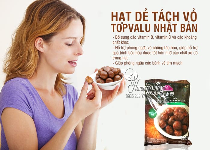 Hạt dẻ - món ăn vặt bổ dưỡng, tốt cho sức khỏe được rất nhiều người ưa chuộng bởi trong hạt dẻ có chứa nhiều các chất dinh dưỡng như vitamin B, vitamin C và khoáng chất. Đây là món ăn vặt giàu dinh dưỡng, lành mạnh hơn so với các loại đồ ăn nhanh hay bánh kẹo ngọt khác trên thị trường. Và trong mỗi dịp tết đến xuân về, hạt dẻ là món được nhiều gia đình lựa chọn để mời khách, cùng nhau thưởng thức và quây quần bên nhau. Hạt dẻ ngon là vậy thế nhưng nhiều người vẫn còn đang ngại về việc bóc hạt, nếu bóc không khéo thì sẽ làm trầy xước tay…Và để giải quyết vấn đề đó, Hangngoainhap chúng tôi xin với thiệu đến các bạn một loại hạt dẻ thơm ngon, bổ dưỡng đang hot trên thị trường dạo gần đây: Hạt dẻ tách vỏ Topvalu Nhật Bản.