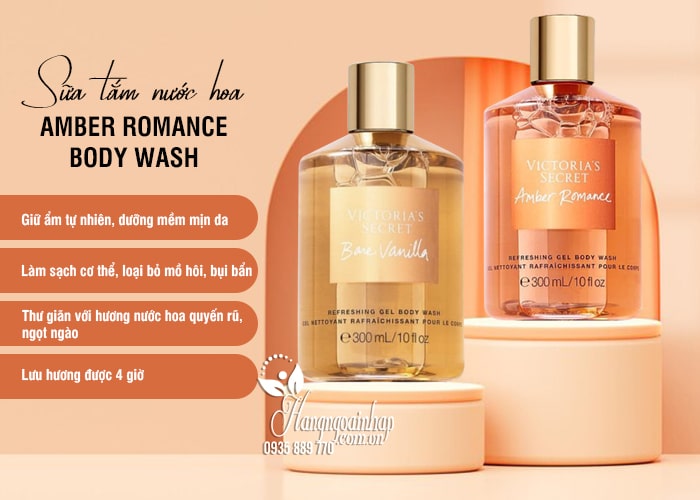 Sữa tắm nước hoa Victoria's Secret Amber Romance Body Wash 300ml của Mỹ mùi hương nồng nàn, quyến rũ, tươi mát xua tan mọi mệt mỏi, stress - giúp lấy lại tinh thần lạc quan, yêu đời, tự tin...