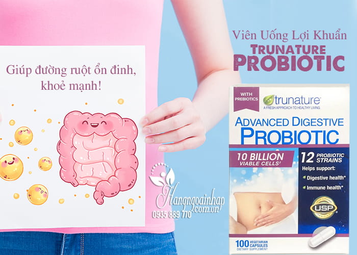✔ Viên uống Trunature Advanced Digestive Probiotic bổ sung 10 tỷ lợi khuẩn giúp cân bằng hệ vi sinh đường ruột, cải thiện hệ tiêu hóa, tăng khả năng hấp thu dinh dưỡng, hỗ trợ miễn dịch.