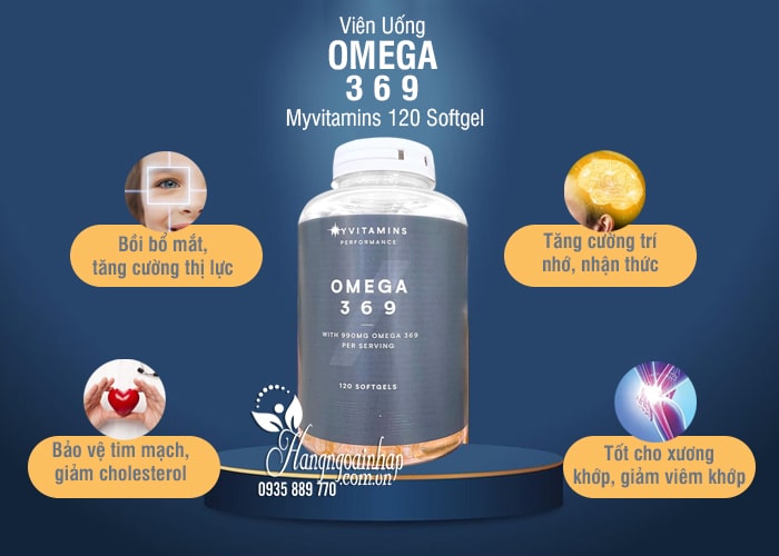 Viên uống Omega 3 6 9 Myvitamins 120 Softgel bổ sung nguồn acid béo tốt cho cơ thể, giúp bảo vệ tim mạch, chống đột quỵ, tăng cường trí nhớ, làm sáng mắt, hỗ trợ hệ miễn dịch, chống lão hóa, phòng ngừa bệnh tật,...