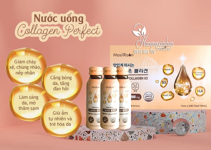 =>> Collagen Masilraon Perfect 3000mg của Hàn Quốc có mặt tại nhiều shop. Tuy nhiên, để mua đúng hàng chính hãng với mức giá tốt, mời bạn ghé đại lý Hàng Ngoại Nhập. Chúng tôi cam kết hàng có bill chuẩn, giá cạnh tranh. Hàng được đóng gói cẩn thận, dịch vụ giao hàng nhanh chóng, được kiểm tra hàng trước khi thanh toán.