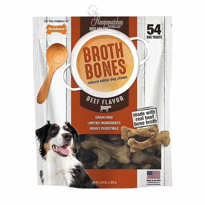 Thức ăn cho chó Broth Bones Nylabone 54 miếng của Mỹ - Hương vị bò thơm ngon hấp dẫn
