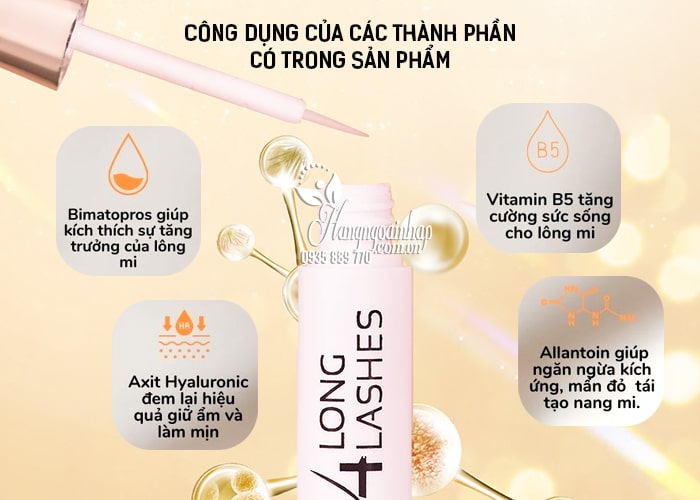 Tinh chất dưỡng dài mi 4 Long Lashes 3ml chính hãng, có tem nhãn phụ tiếng Việt tại đại lý Hàng Ngoại Nhập. Chúng tôi cam kết chất lượng sản phẩm chính hãng, dịch vụ giao hàng nhanh toàn quốc.