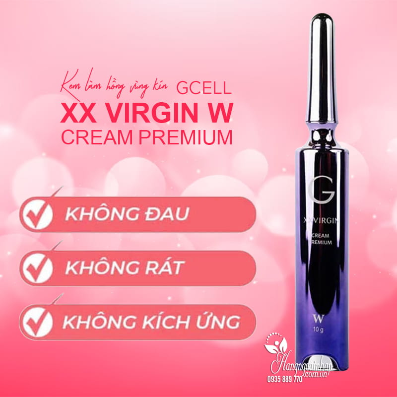 => Thì kem Gcell XX Virgin W chính là sự lựa chọn tối ưu. Phiên bản Gcell W chuyên làm hồng vùng kín, hỗ trợ tái tạo và trẻ hóa, giúp chị em phụ nữ tự tin hơn.