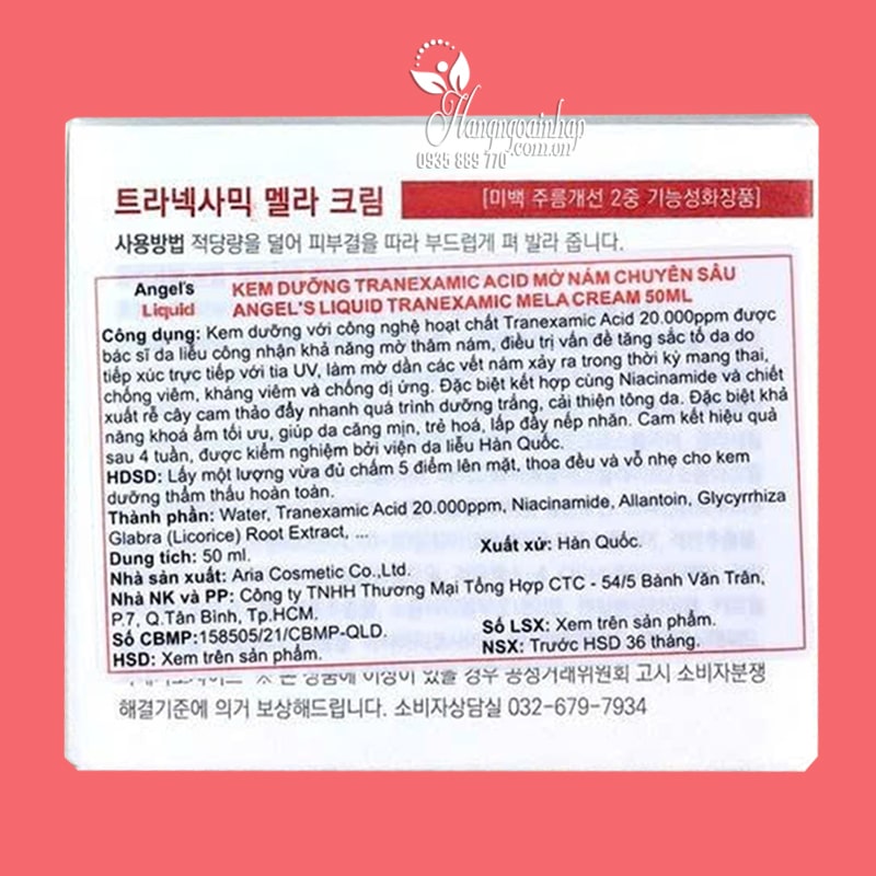 Kem dưỡng trắng da mờ nám Tranexamic Mela Cream Angel’s Liquid 50ml của Hàn Quốc - Phiên bản hộp trắng dành cho da nhạy cảm