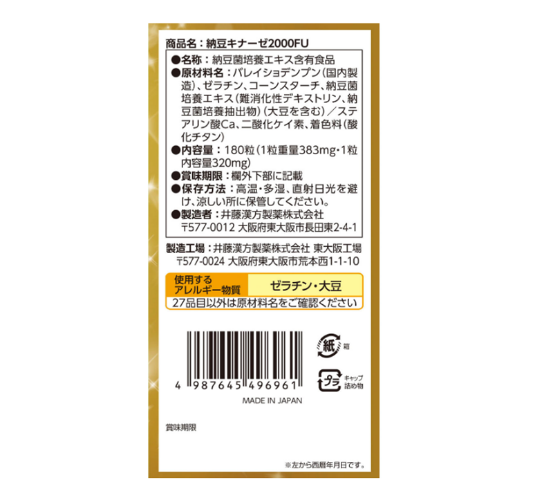 Viên uống hỗ trợ chống đột quỵ Itoh Nattokinase 2000FU của Nhật Bản hộp 180 viên - Cải thiện tuần hoàn máu và phòng ngừa hình thành cục máu đông