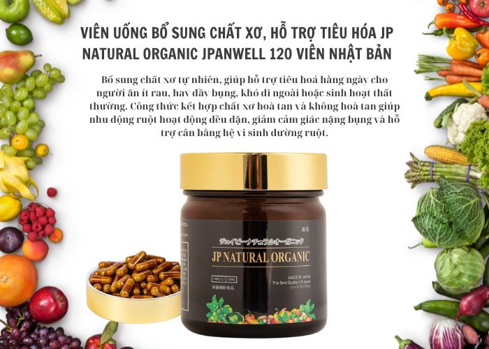 JP Natural Organic Jpanwell là viên uống chất xơ hữu cơ được nghiên cứu và sản xuất theo quy trình tiêu chuẩn Nhật Bản. Sản phẩm bổ sung đồng thời chất xơ hòa tan , chất xơ không hòa tan, kết hợp cùng prebiotic, probiotic, vitamin và chiết xuất rau củ, trái cây tự nhiên, tạo nên một phức hợp giúp hỗ trợ tiêu hóa một cách toàn diện. Không chỉ dừng lại ở việc cung cấp chất xơ, JP Natural Organic còn giúp cải thiện môi trường đường ruột, cân bằng hệ vi sinh, thúc đẩy nhu động ruột và tăng cường khả năng đào thải tự nhiên của cơ thể. Nhờ đó, người dùng không chỉ giảm táo bón, bớt đầy hơi mà còn cảm thấy cơ thể nhẹ nhàng, da sáng hơn, tinh thần thoải mái hơn sau thời gian sử dụng đều đặn. Đặc biệt, sản phẩm phù hợp cho nhiều nhóm đối tượng từ người bận rộn, dân văn phòng, người lười ăn rau, người lớn tuổi cho đến những ai đang muốn cải thiện sức khỏe tiêu hóa cũng như sắc đẹp.