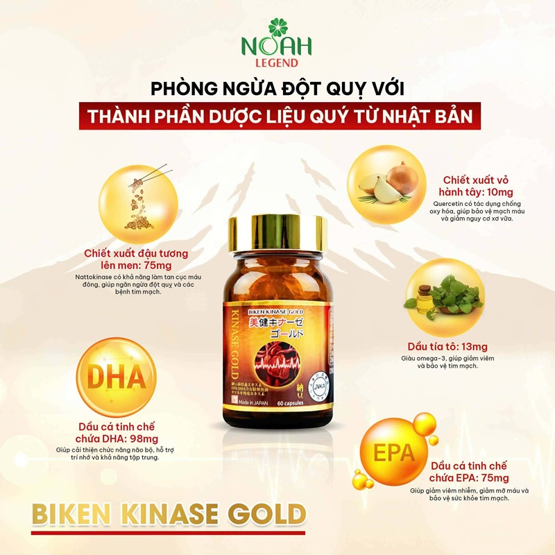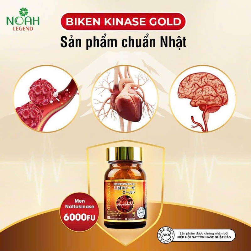 Viên uống phòng ngừa đột quỵ Biken Kinase Gold Noah Legend 60 viên của Nhật Bản - Chống cục máu đông, bảo vệ tim mạch
