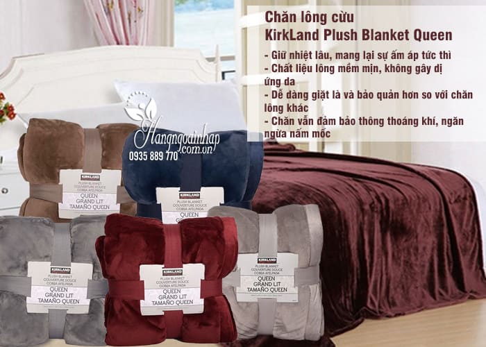 5. Chăn lông cừu Kirkland Plush Blanket Queen – 248 x 233cm của Mỹ