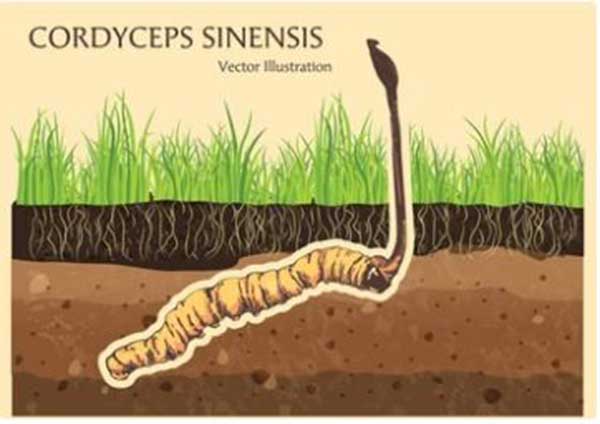 Trong mùa đông, bào tử nấm xâm nhập vào cơ thể ấu trùng và phát triển âm thầm. Khi mùa hè đến, nấm hút hết dưỡng chất, mọc trồi lên mặt đất như một ngọn thảo dược.