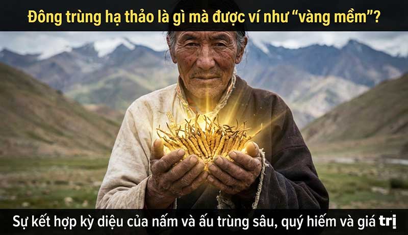 Đông trùng hạ thảo là gì mà được ví như “vàng mềm”? Câu hỏi này không chỉ xuất hiện trong các cuộc trò chuyện về sức khỏe, mà còn khiến nhiều người tò mò về giá trị thật sự của loại dược liệu đắt đỏ này. Không lấp lánh như vàng, nhưng đông trùng hạ thảo lại được săn đón như báu vật của tự nhiên.