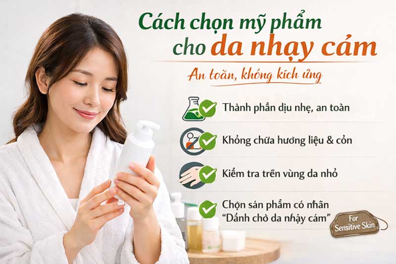 Cách chọn mỹ phẩm cho da nhạy cảm an toàn, không kích ứng luôn là nỗi băn khoăn của rất nhiều người. Chỉ cần chọn sai một sản phẩm, làn da có thể đỏ rát, châm chích hoặc nổi mụn ngay lập tức. Vậy làm sao để da được chăm sóc đúng cách mà vẫn an tâm mỗi ngày?